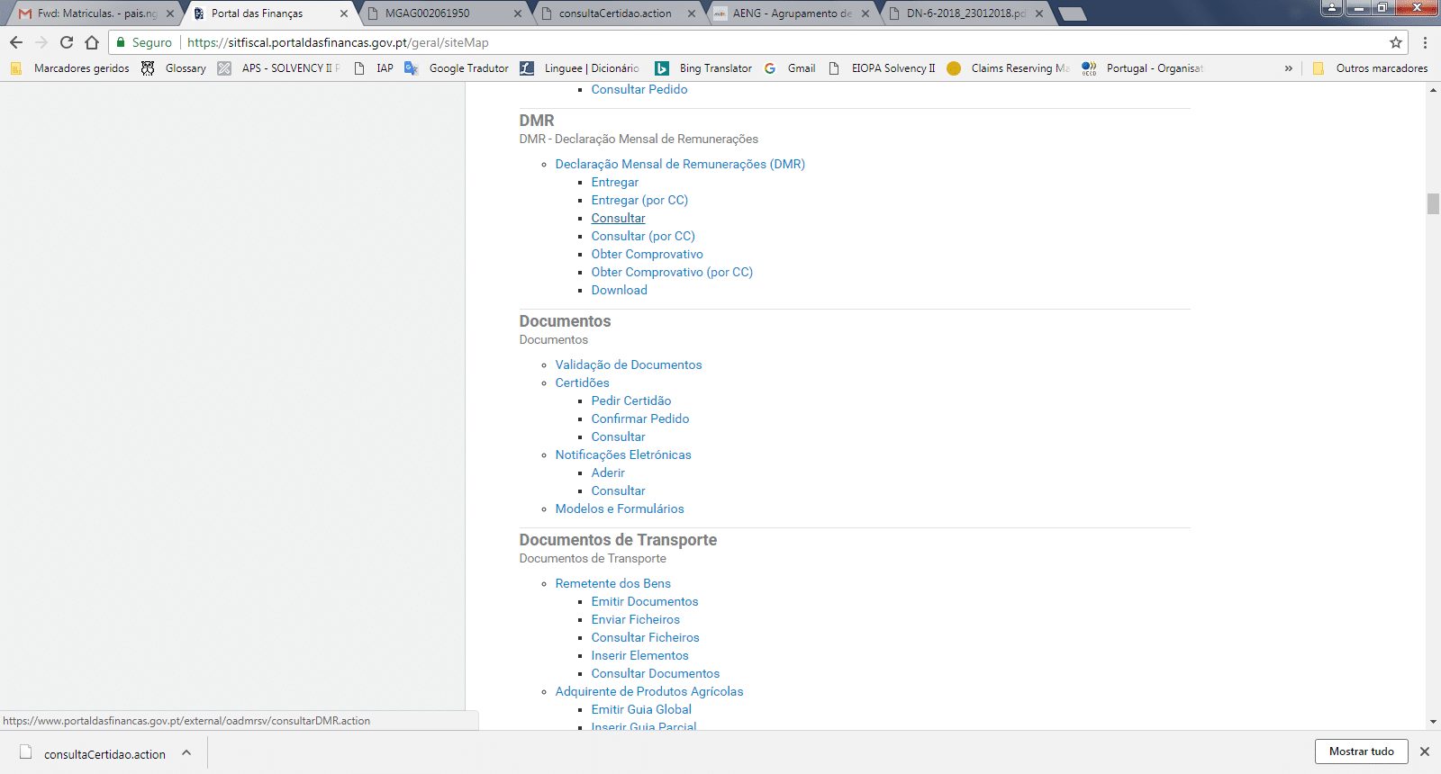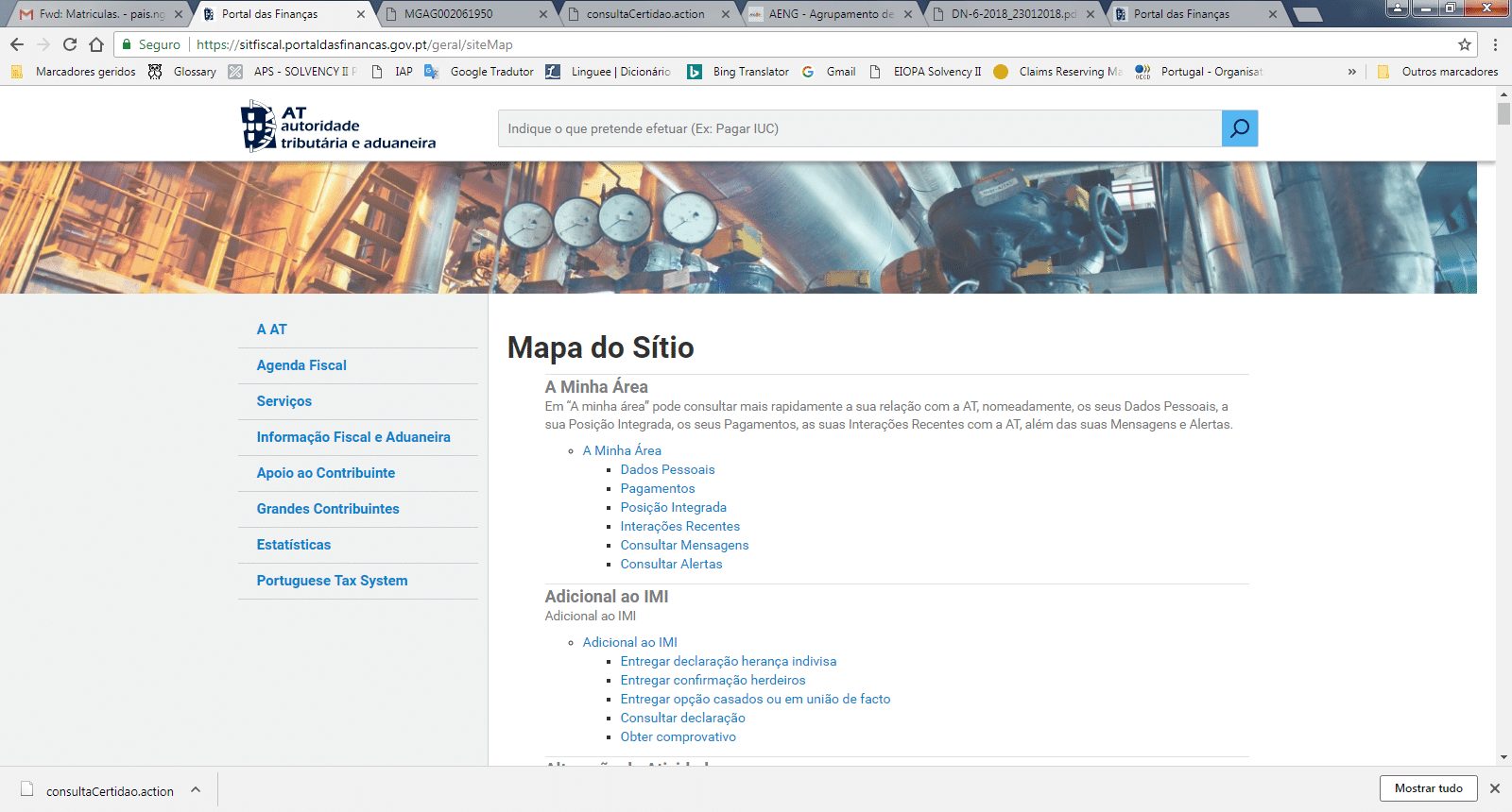 Feita essa opção irá surgir o Mapa do Sítio onde deverá escolher na secção “Documentos” a opção ” Pedir certidão“.