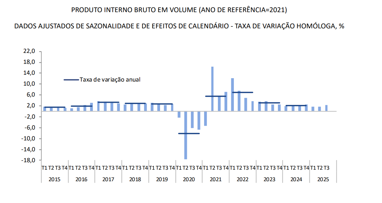 Com a divulgação dos valores preliminares do produto interno bruto relativos ao 3º trimestre de 2025 pelo INE, constata-se que após a forte desaceleração da atividade económica entre o 4º trimestre de 2024 e o 1º trimestre de 2025 (passando de um crescimento homólogo de 2,6% para 1,7%, respetivamente), a economia portuguesa está a acelerar pelo 3º trimestre consecutivo.