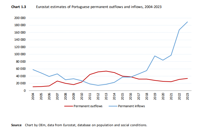 Os dados de 2023, agora revelados, indicam que em termos líquidos, ou seja, já descontadas as saídas, o saldo migratório terá batido um recorde positivo de 155.701 indivíduos. Portugal terá assim conseguido mais do que compensar as saídas e registado um aumento da população residente por via da entrada de imigrantes em cerca de 155 mil pessoas (136 mil em 2022).