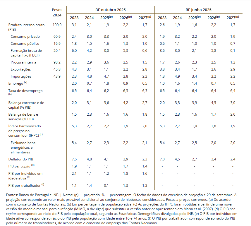 A título de complemento, o BdP projeta que a inflação encerre 2025 nos 2,2%. Para 2027 a previsão fixa-se nos 2,0%. Portanto, entre 2025 e 2027, a taxa de inflação deverá rondar os 2% se estas projeções se confirmarem.