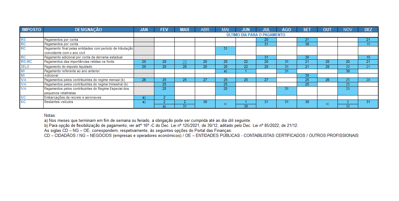Recordamos aqui o Calendário dos Impostos em 2026 – Obrigações de Pagamento: