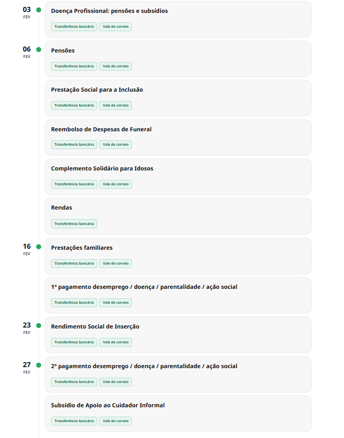 Datas de Pagamento das Prestações Sociais – Fevereiro de 2026