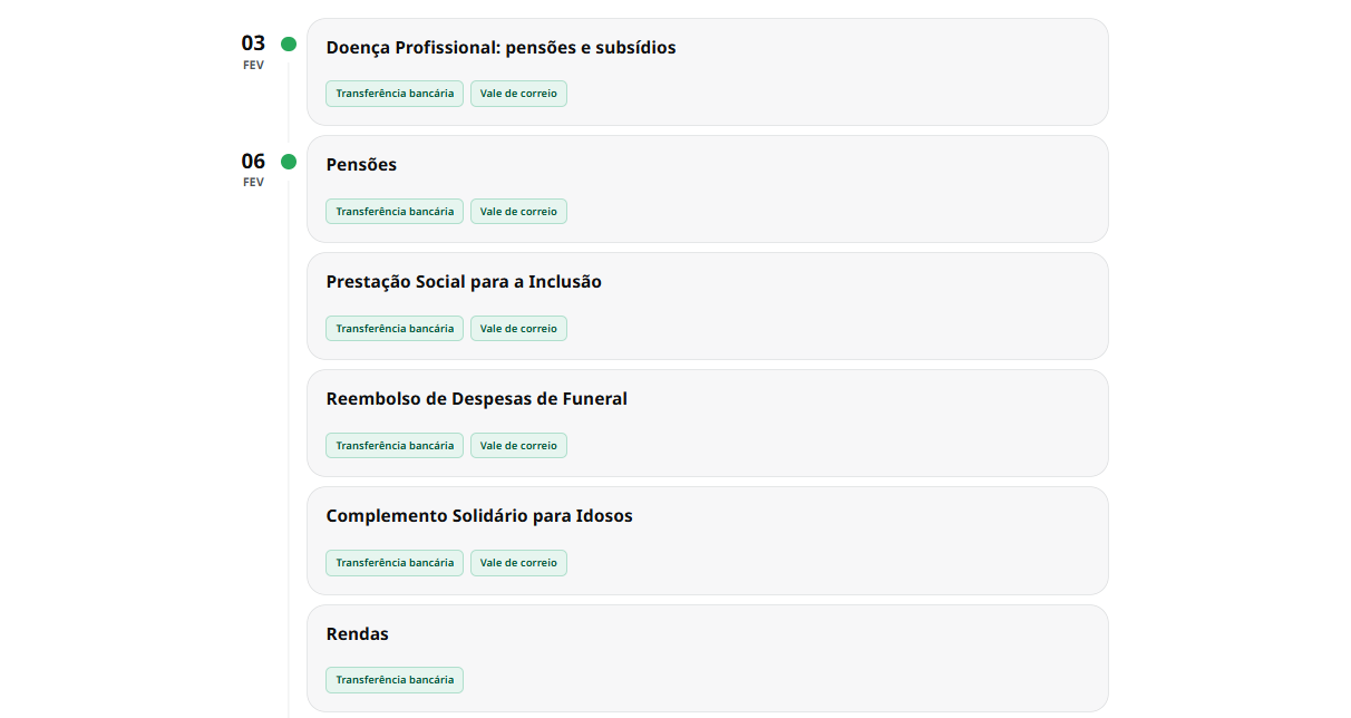 Poderá conhecer aqui as datas dos restantes pagamentos de prestações sociais em fevereiro de 2026.