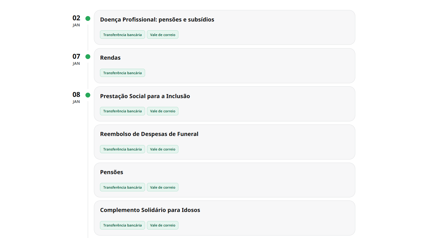 Ao segundo dia do ano temos a data do primeiro pagamento das prestações sociais em 2026.