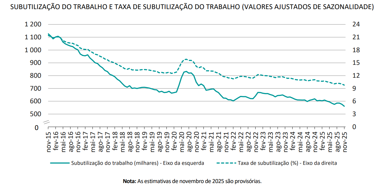 Mínimo histórico na subutilização do trabalho